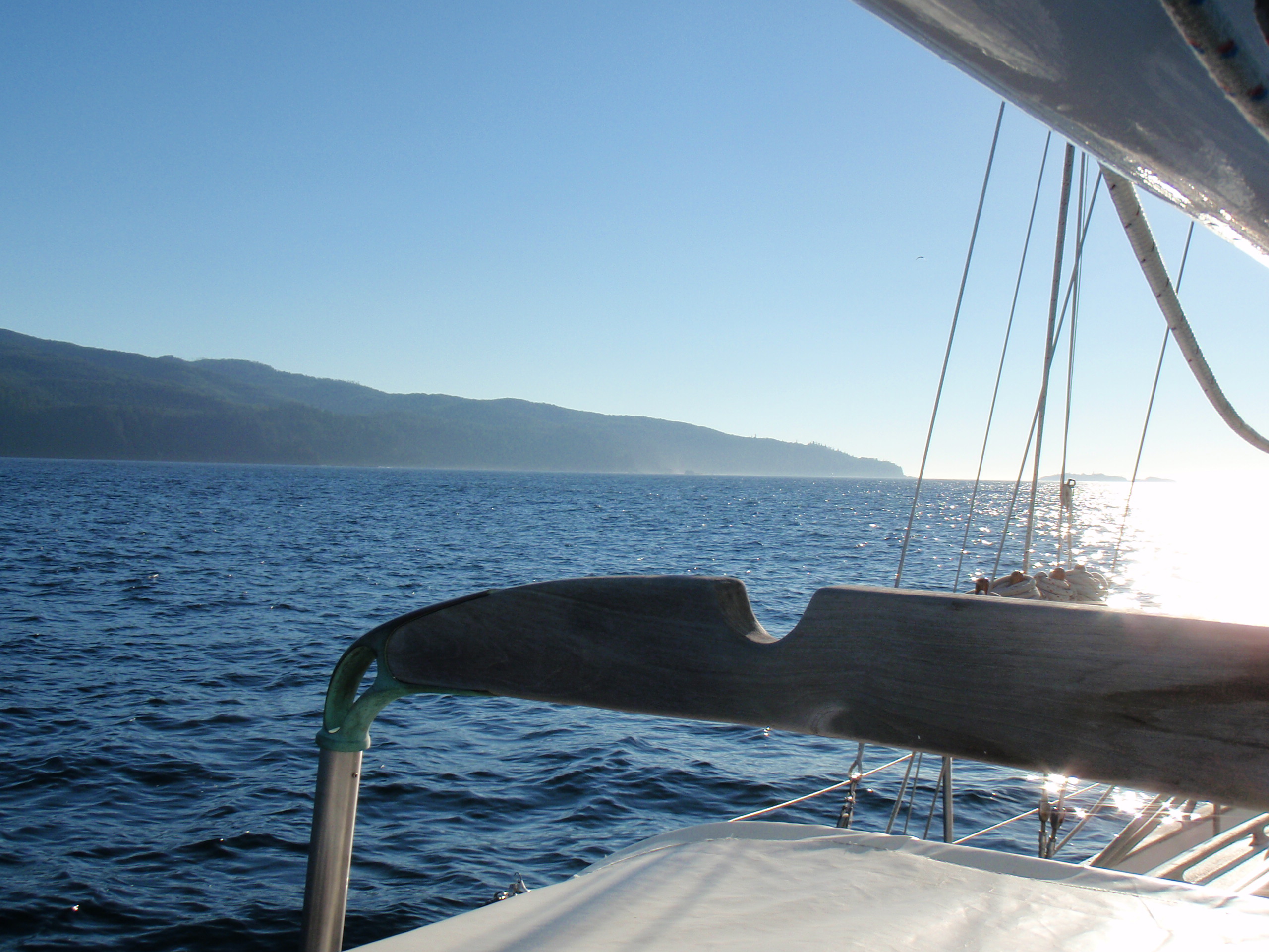 Turning our gaze westward, we sailed west for 30 miles before turning southward. Seas were calm and the half moon just off our bow. Clear skies and a lunar trail laid down across the gentle swells made our first overnight sail a blessing. Moonset, and the great dipper and Polaris made themselves known to us off our stern. For a few hours we were able to follow the distant tricolor of another southbound sailing boat that had left Port Angeles an hour before us, but they eventually vanished into the changling light. The wind changed its mind and dropped from 12 to 10 to 5 to 3 knots before finally laying down completely for the night.