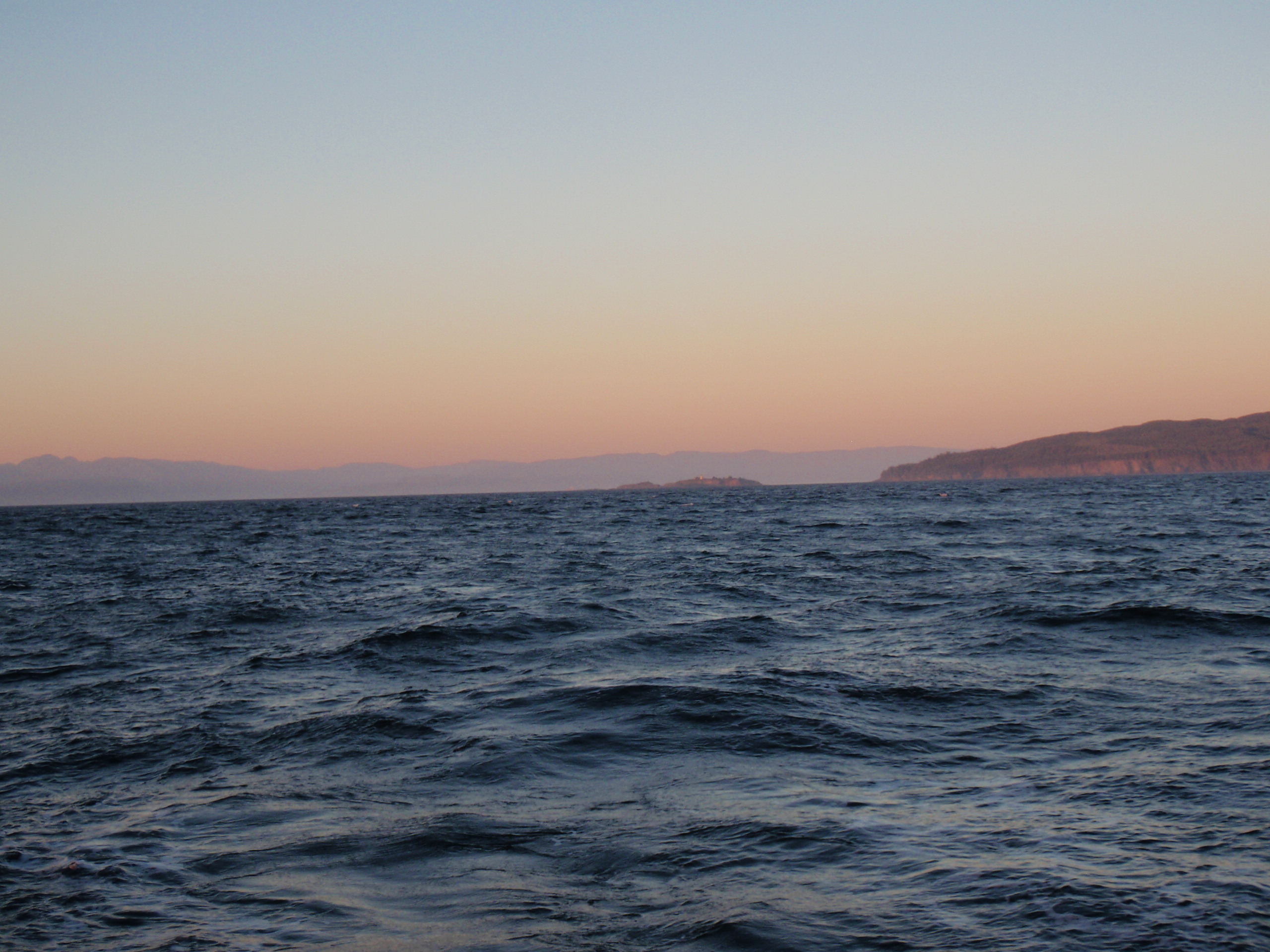 Fair skies and an East wind gave us a gentle ride wing-and-wing as we traded our inland sea for the larger swells of the open ocean. We felt properly sent-off as a feisty celebration of dolphins cruised our wake, daring each other to pass beneath the boat at high speed.