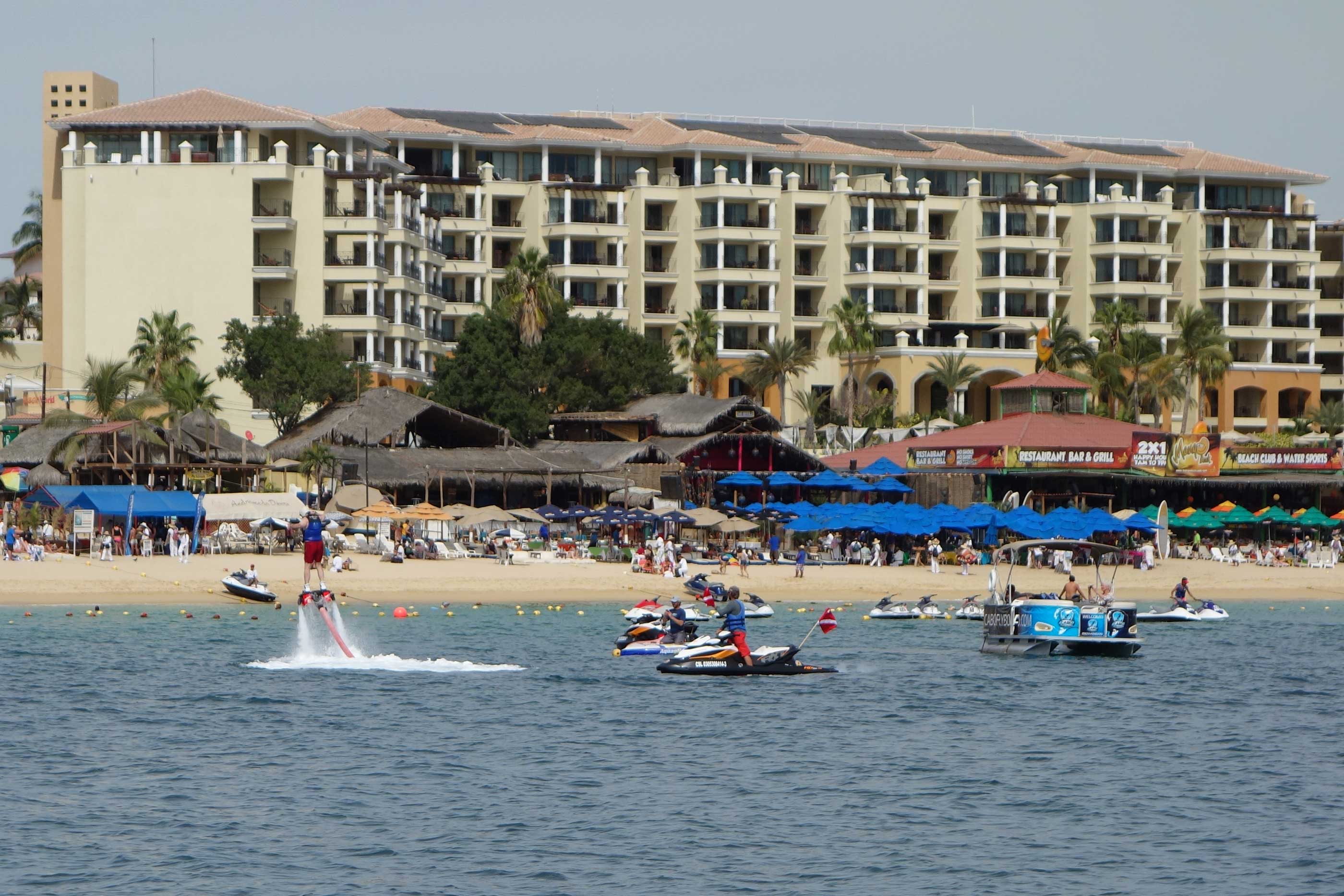 And the show begins. We were prepared to really dislike Cabo, but we were genuinely entertained the first day and a half by all the watersport craziness and the near-constant DJ patter from the two beach cantinas that poured out 1980s music and orchestrated mass-drinking games from about 10am until the late (or early) hours.
