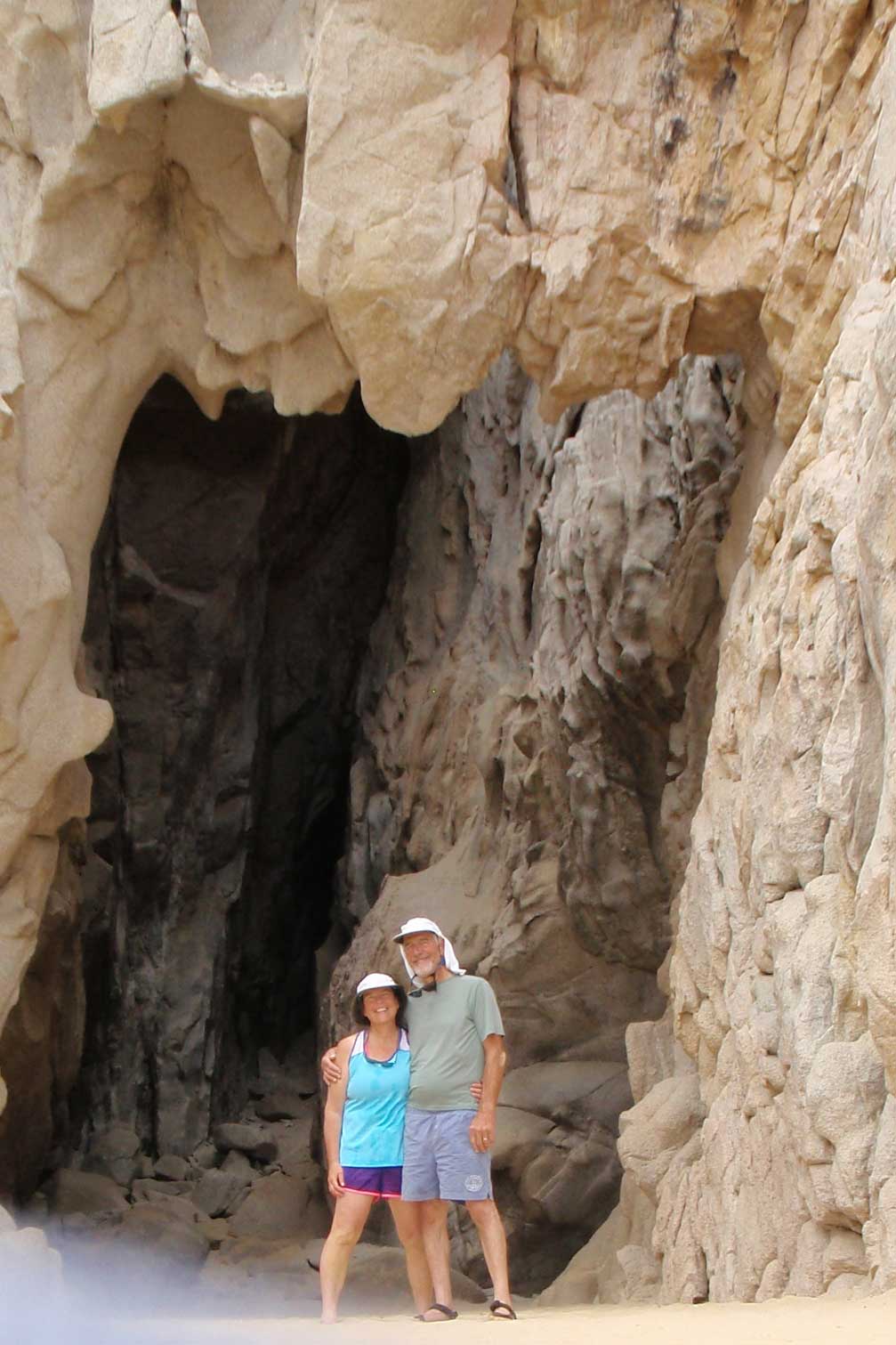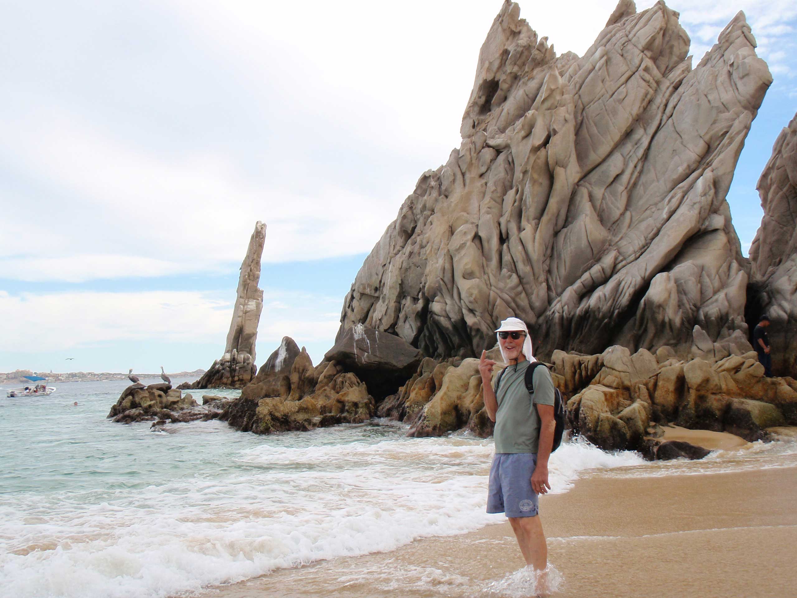 After 46 hours travel time, we turned the corner around Lands’ End at dawn, a fine time to make the traverse. The white rock formations soak up the days ’new colors, and the radio makes for entertaining, enlightening listening as all the fishing craft check in with the Port Captain. We also had to check in via radio, and after listening to a couple of dozen calls, I finally made my attempt. Success! We stopped at the inner harbor for fuel and water (only used 30 gallons of diesel from San Diego), then went back out to drop our hook. Only two other vessels were anchored off the main beach, so we found our spot and settled in for the Cabo San Lucas ride.