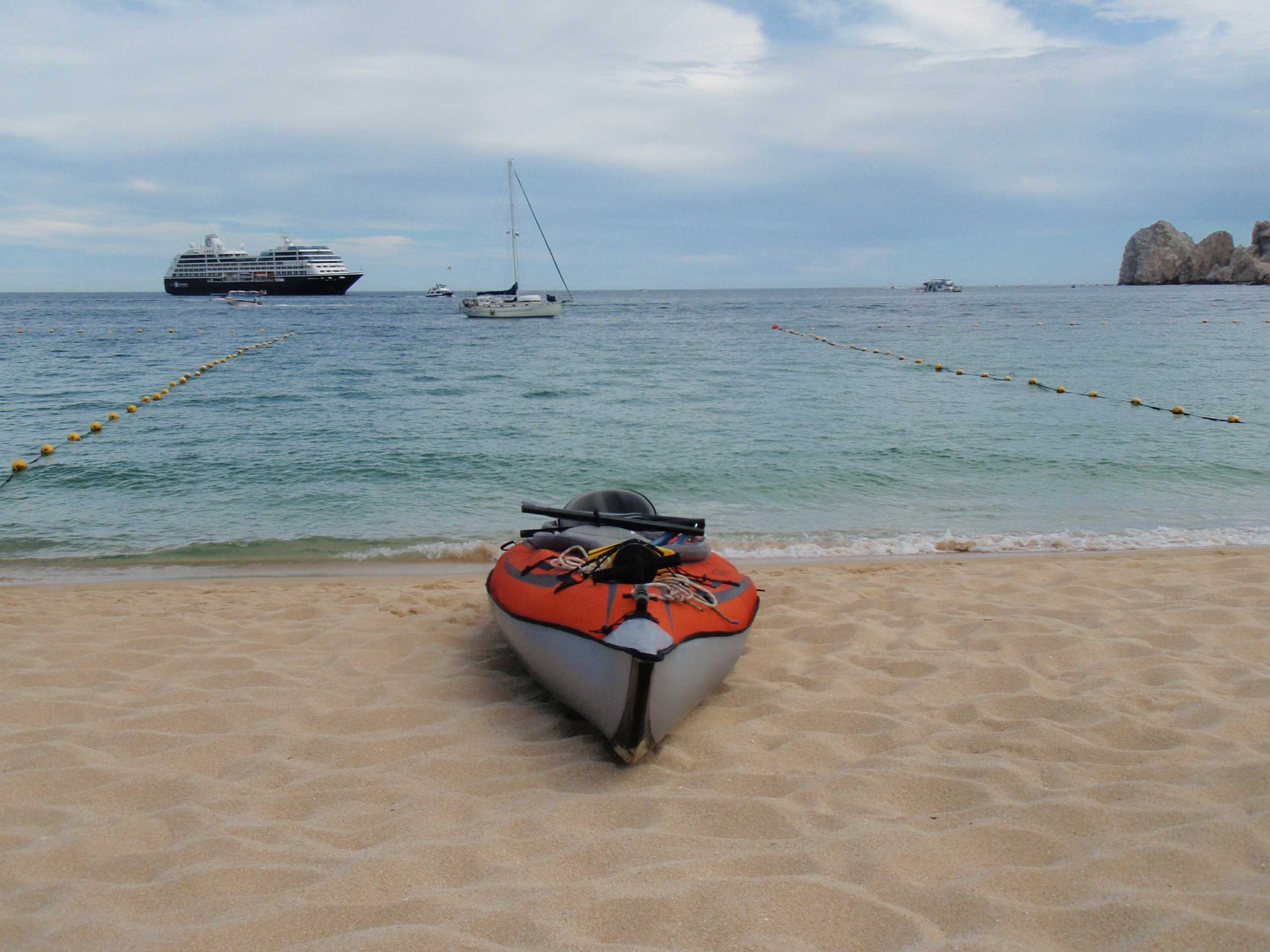 The mile-long kayak ride back to Pelican Moon was quite an adventure. The daily fishing fleet was returning, with swarms of pelicans, gulls, and big bull sea lions all trailing the wake looking for a handout. Add to that the continuous stream of glass-bottomed taxi boats, dive boats, and small fishing pangas, and the swells were as confused as anything we’ve ever seen. Sometimes the waves just spun us 90 or 100 degrees willy-nilly.