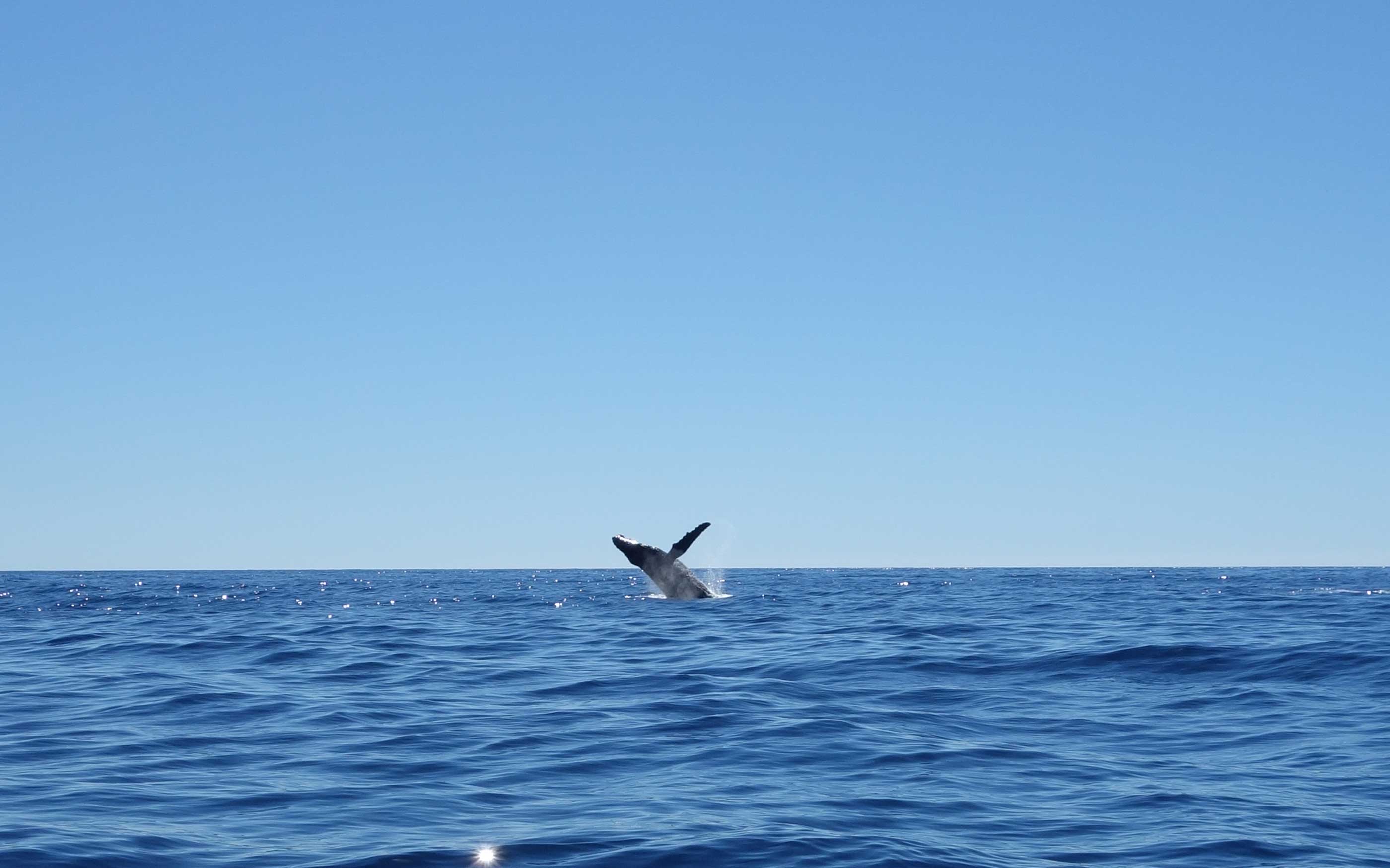 Believe it or not, we were only a little disappointed not to hook anything. The bigger catch was a tremendous whale show! Two big whales swam back and forth across the seamount, came close to our boat, and then breeched, tail-slapped and fluke-slapped their way parallel to our course for 15 minutes or so. Awesome.