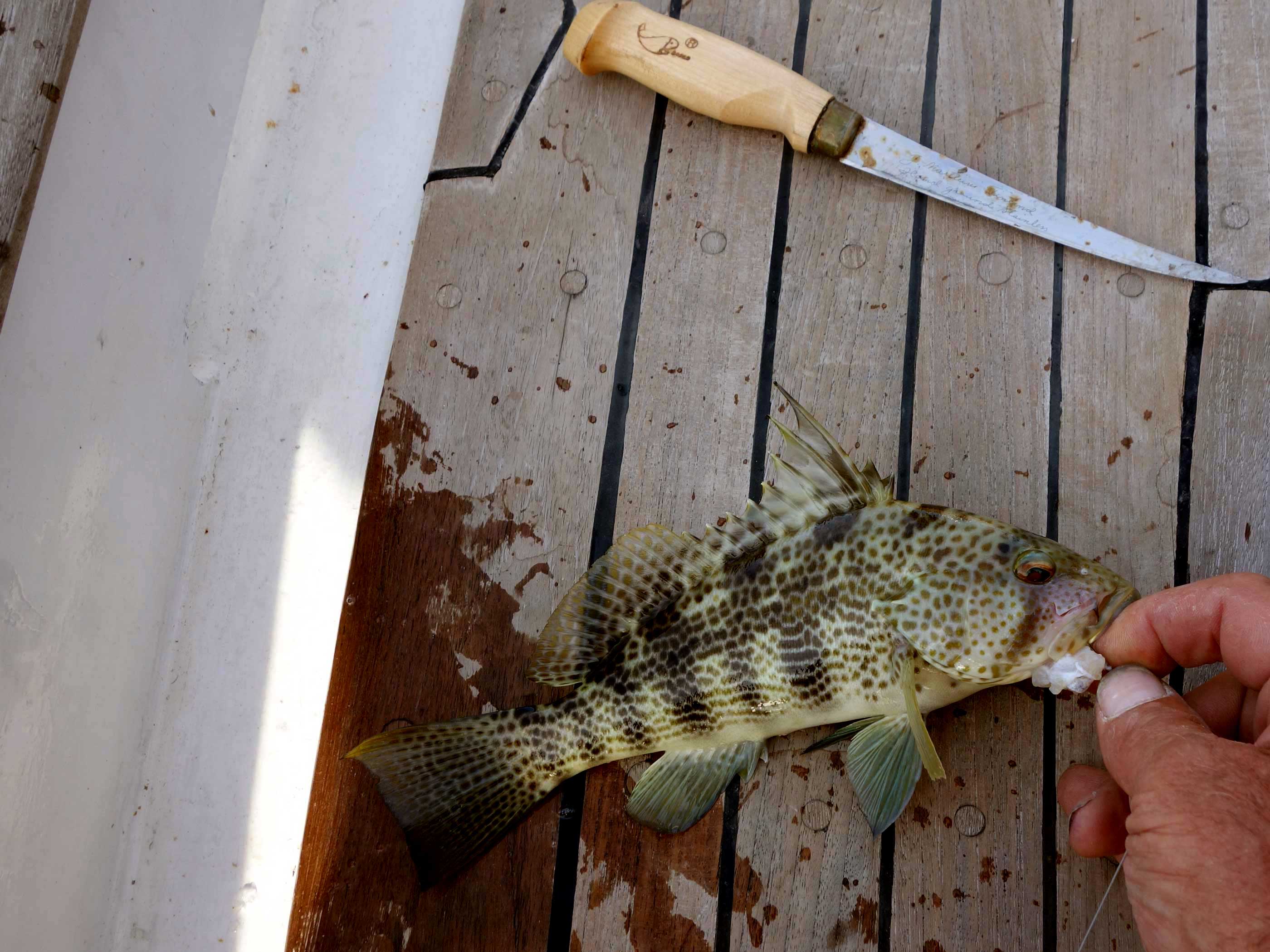 c11asandbassweb Published February 21, 2014 at 2800 × 2100 in Mossback Metamorphosis ← Previous Next → Spotted sand bass, called Cabrillo in Mexico (paralabrax maculatofasciatus). They eat clams, mostly, and live to be about 14 years old, though not this one. . .