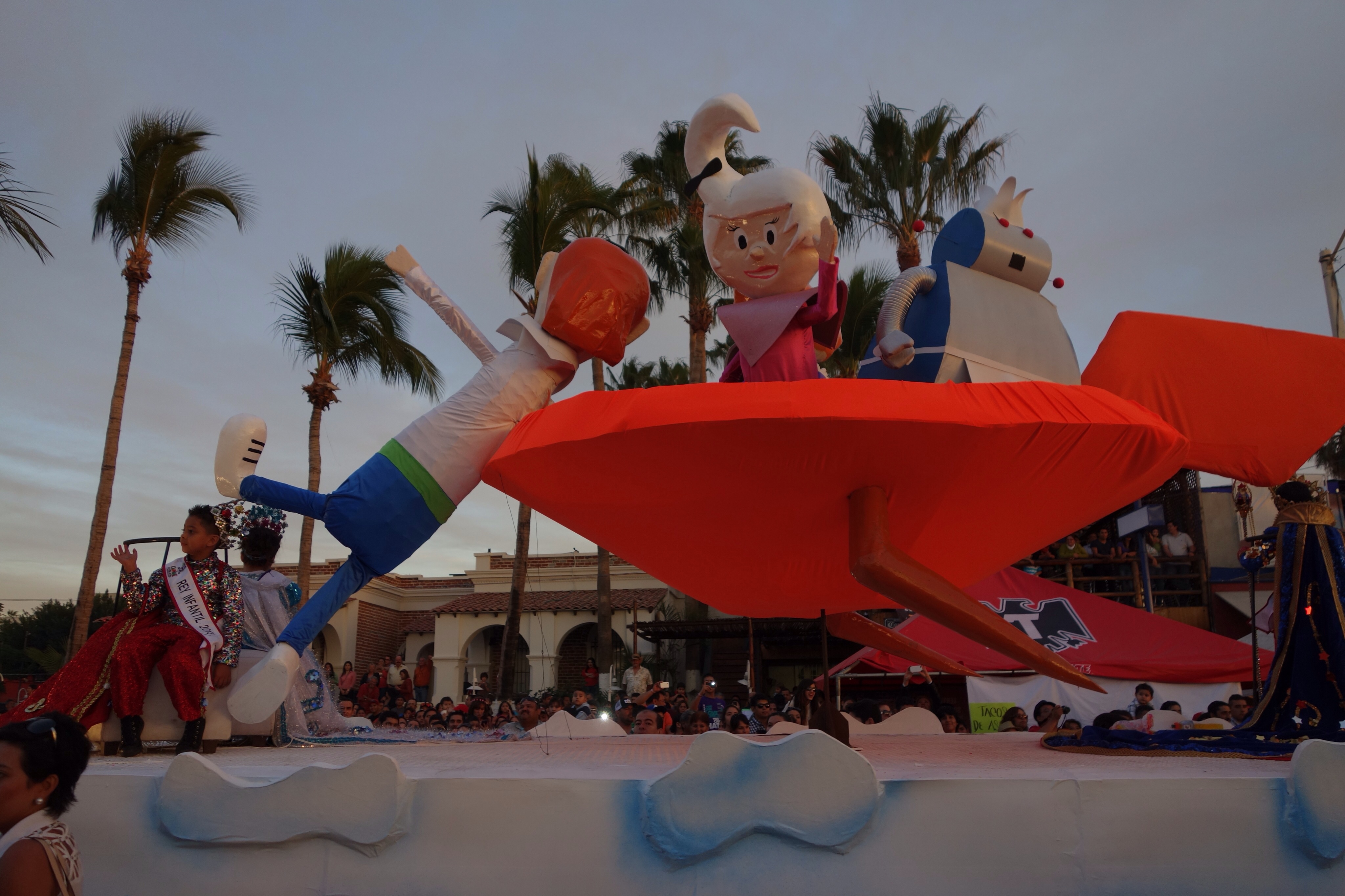 Carnaval La Paz in 2014 was equal parts cotton candy, fuzzy monsters, sixties’ space icons, confused music, fast-talking salesmen, and a whole mess of deep-fried ‘food.’  It was a bit of a shock to find out that the parade theme in La Paz this year had something to do with space movies and television programs produced in the US.  I am sad to report that based on our limited experience of the parades and festivals we have seen in Spain, Canada, France, and now Mexico, Hollywood seems to have taken over as the world’s primary shared cultural experience. That bucket to Hades is getting bigger every minute, and since we’re all in it, I guess we had better start watching more movies or we won’t fit in anywhere, even when we’re traveling internationally.