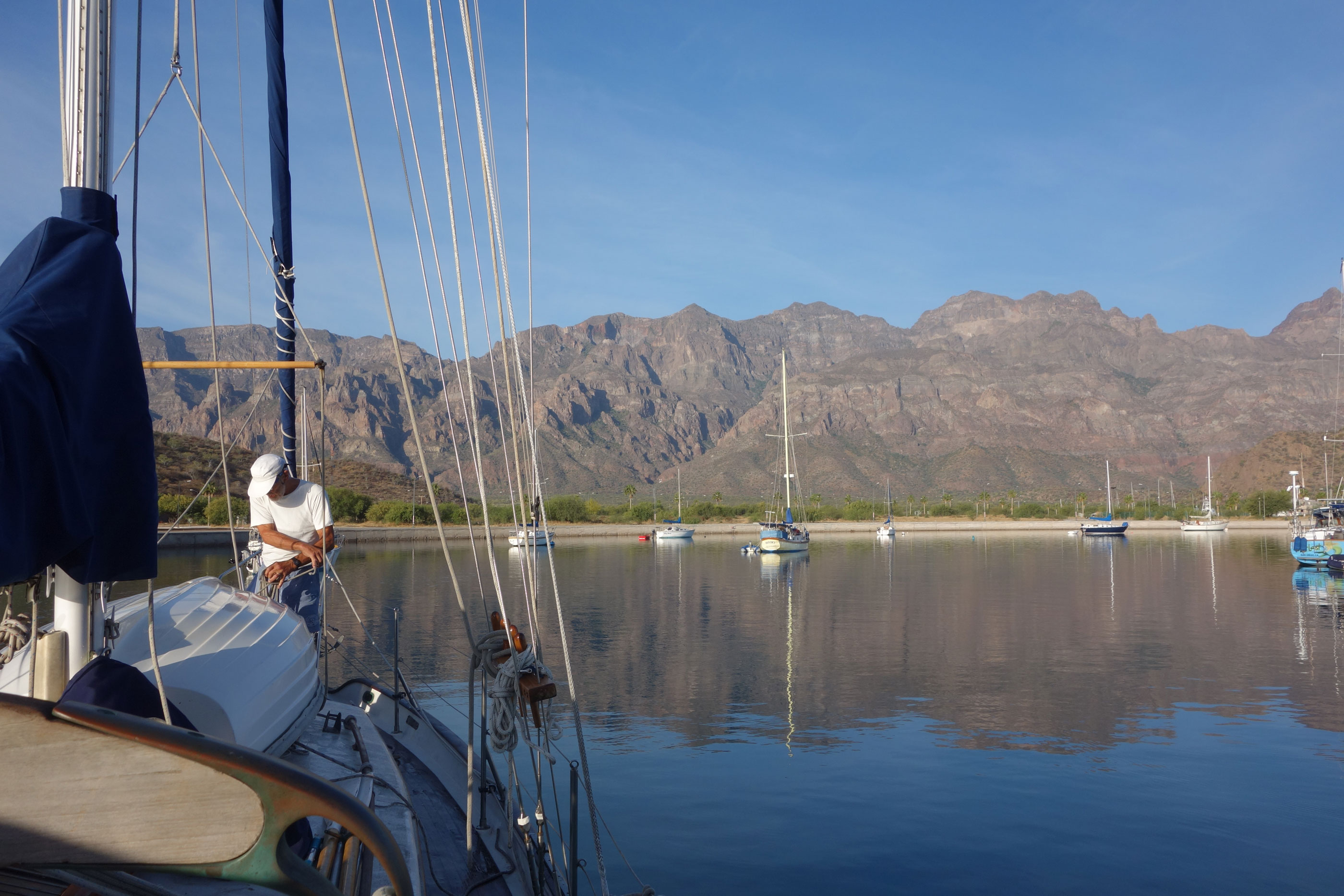 Our memories of the black hole mysteriously erased, several weeks later we left a different anchorage and headed for Puerto Escondido, all three sails flying brightly on a northerly reach. We were anticipating using the harbor as a base station, from where we could catch a ride to nearby Loreto for some internet time, groceries, and a meal away from the boat. Indeed, all of that came to pass, although so strong is the pull of these coastal black holes that we nearly got yanked through the hidden harbor of Puerto Escondido and spit back out in La Paz, a la Star Trek. But I jump ahead in my story.