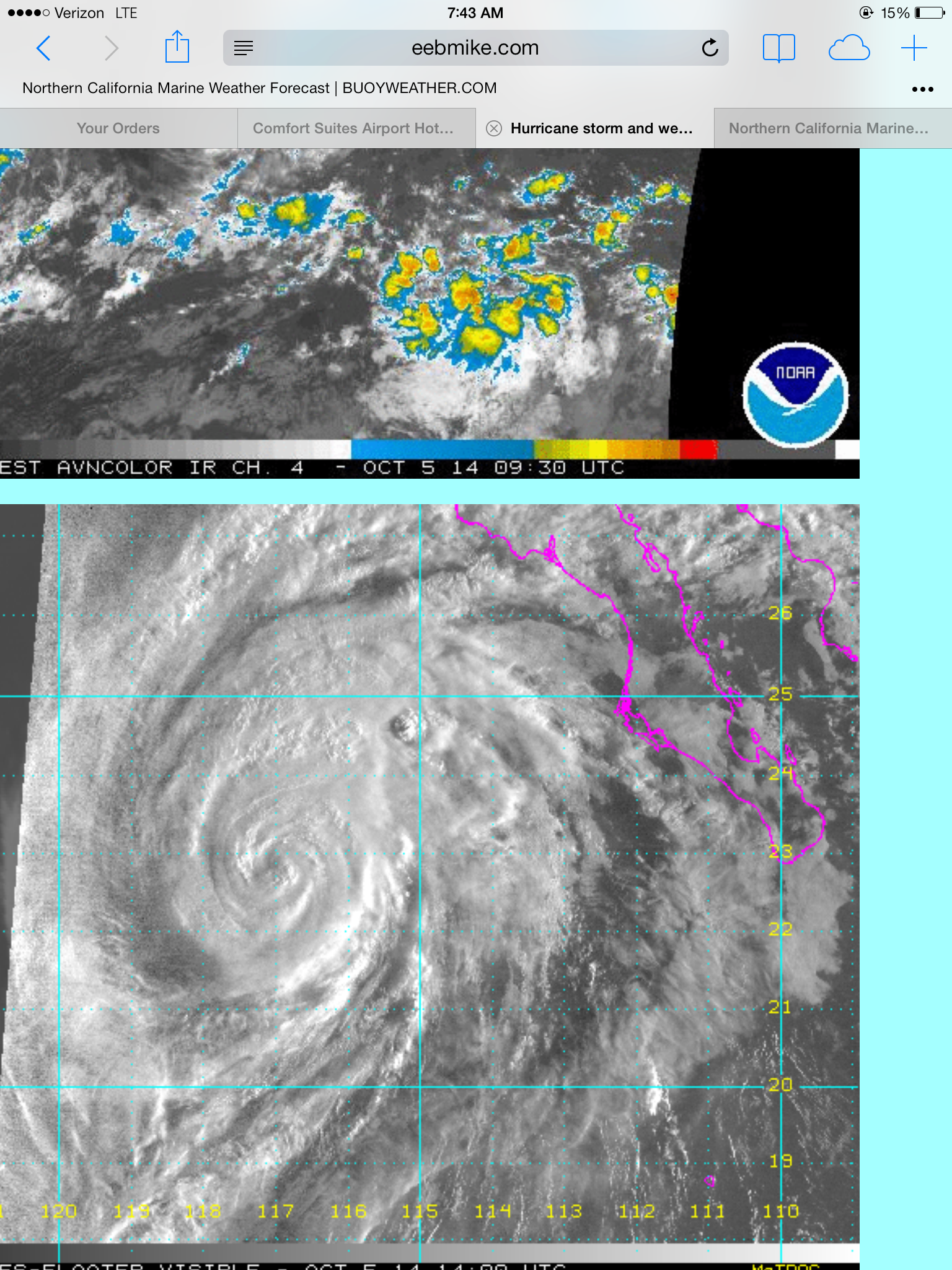 As we were making preperations to fly back to Tucson, Hurricane Simon developed into a Category 4 hurricane overnight. You can see from the overlaid pink outline of the lower Baja peninsula just how huge this hurricane was. Luckily, it deteriorated overnight to a Tropical Storm, so by the time it straddled the peninsula and headed for the mainland, it only carried heavy rains, without the wind.