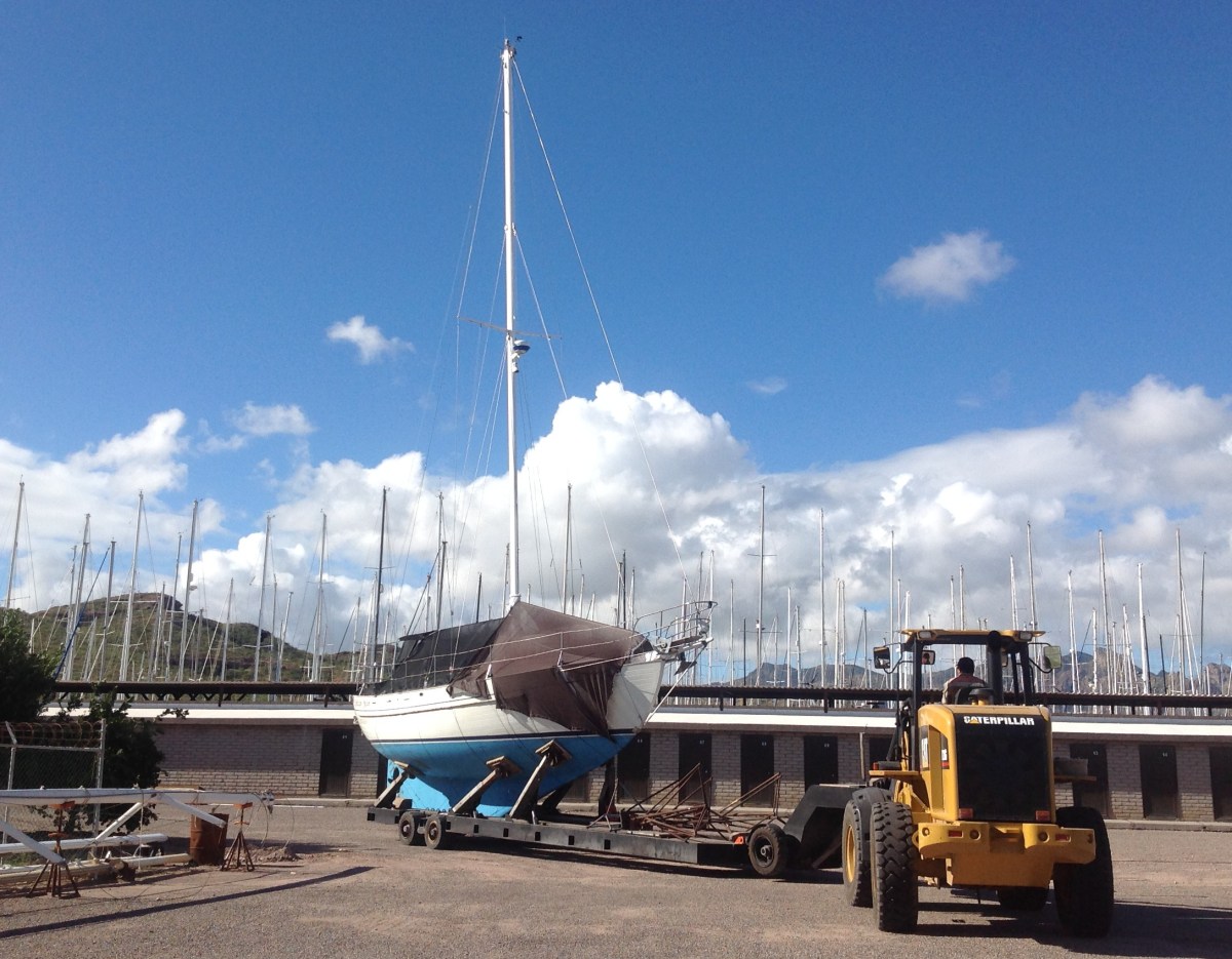 moving PM from storage Published October 28, 2014 at 2177 × 1697 in That was Then, This is Now ← Previous Next → Bringing Pelican Moon out of storage and into the work yard.