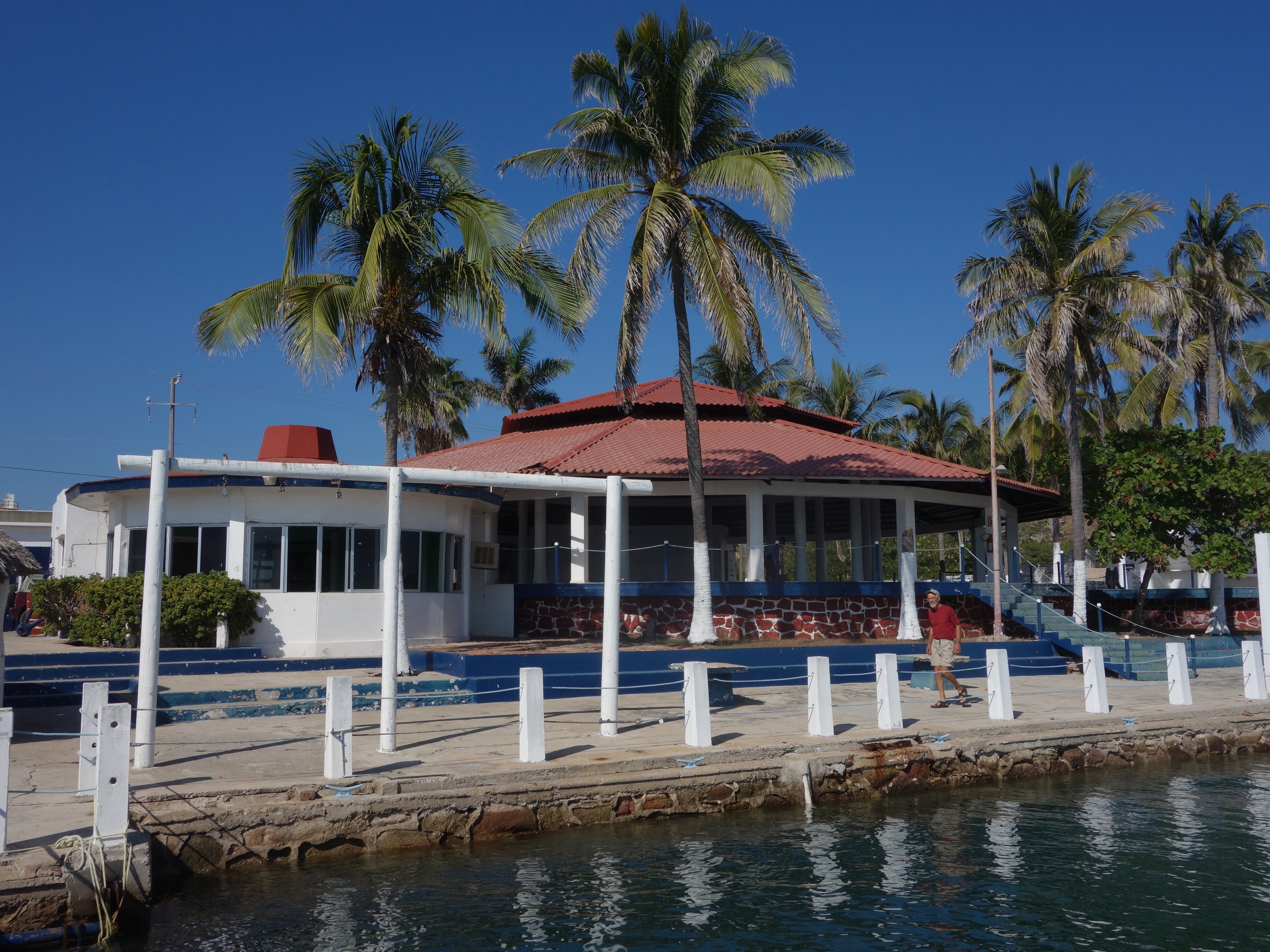 The Mazatlenos have invested a great deal of time and money in the central historic area, restoring colonial buildings and plazas. The Golden Zone is just what it sounds like: the place where all the huge condos and grand hotels have perched on the shores. The recreational marinas are all located in an abused estuary on the edge of the Zone. We are anchored in the commercial harbor, where the fishing boats, shrimpers, container ships, industrial ferries and cruise ships venture in and out. A few of us frugal cruisers come and go as well, as do the regular folk of Mazatlan who own small fishing boats. They keep them anchored in the old harbor, or snugged away in covered garages. We are anchored off Club Nautico, a storage facility and center for recreational fishing. It’s not the main season, so it’s pretty quiet. Tying up our dinghy to their dock costs about $4 a day, and includes cool showers, Wifi, and a sense of security.