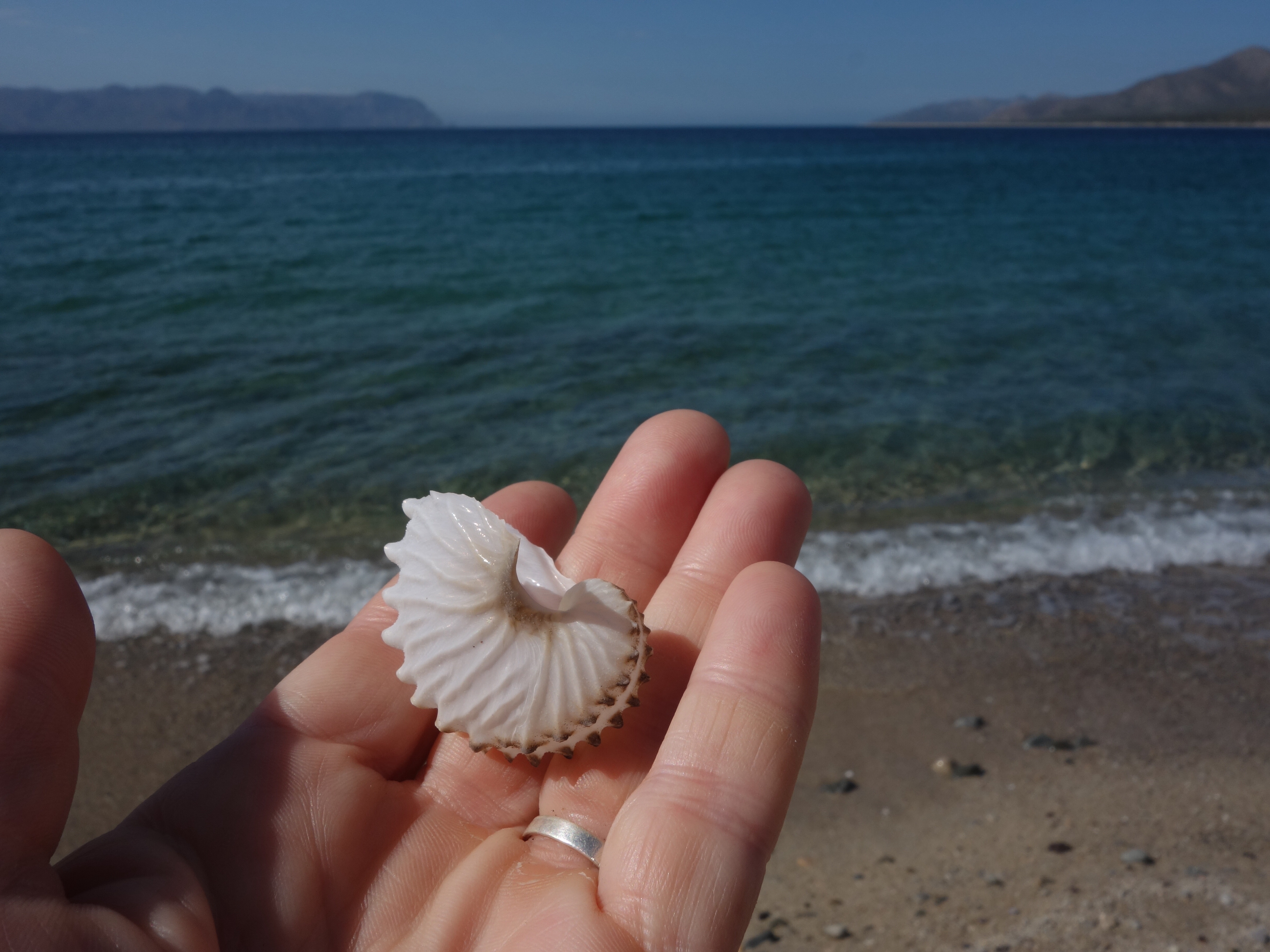 A chambered nautilus egg case I found wrapped in huge drifts of seaweed blown ashore.