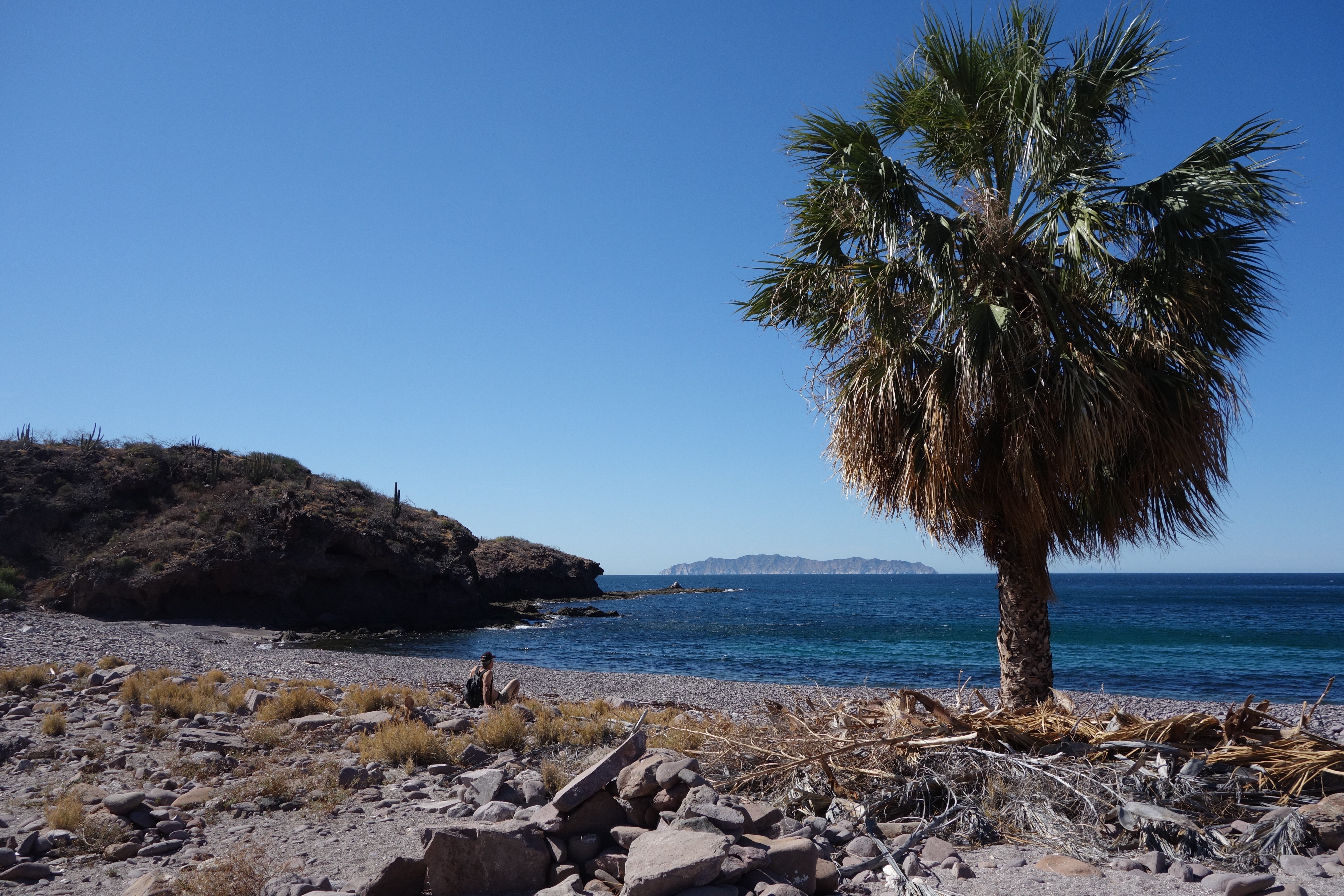 After blowing about in the San Carlos anchorage for a week or so, we finally got a break in the northerlies and were able to get out for a five day shakedown trip to Bahia San Pedro, one of our favorite places. We motor-bashed against 18 knot winds on the nose accompanied by 4-6 foot swells-a good shakedown for the engine and chainplate seals. We dropped anchor without a hitch, and settled down for some great hiking and fishing.image