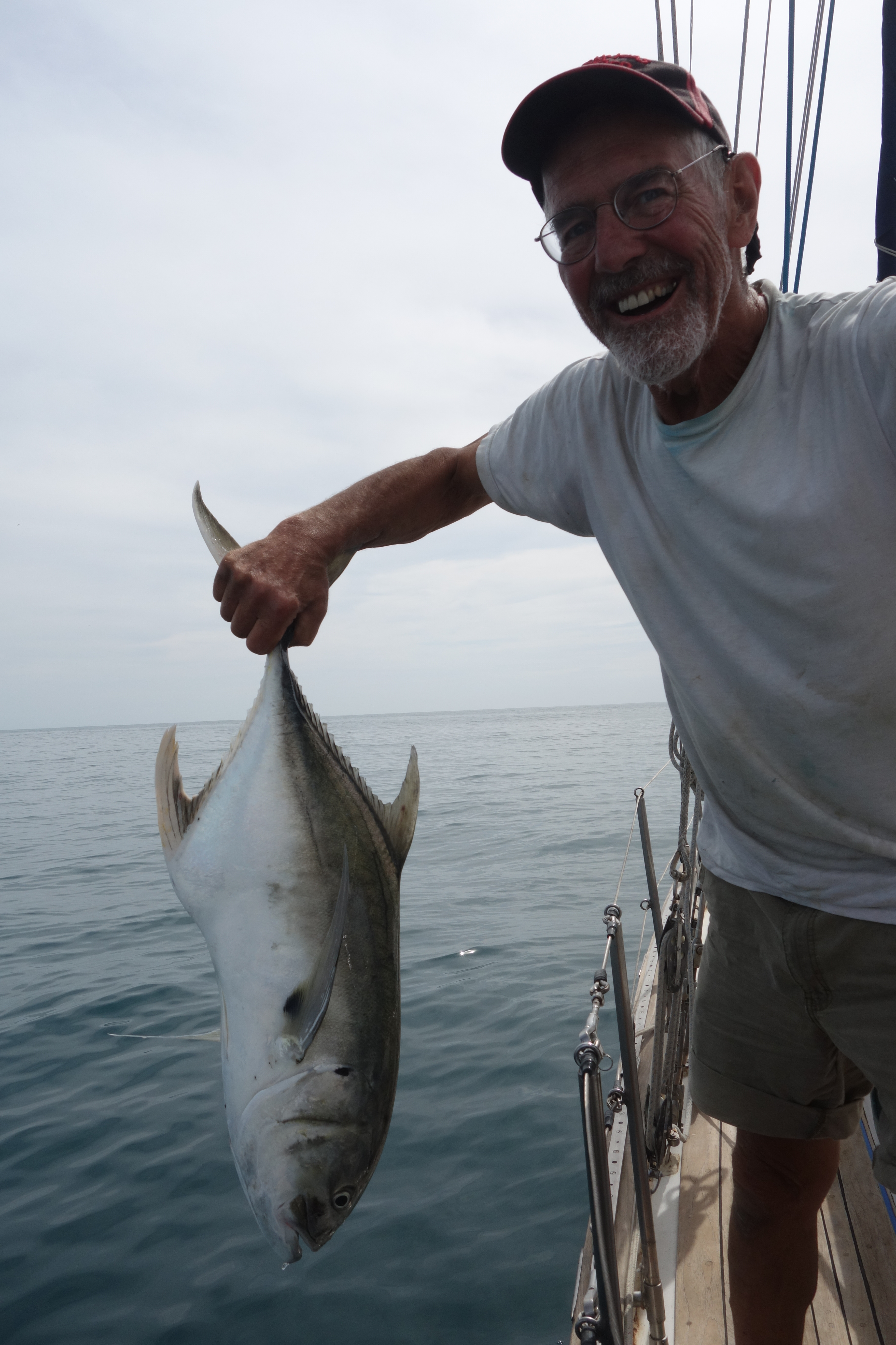Motoring is always time for fishing. Took Wade 25 minutes to bring in this 20 pound Jack Crevalle. We set him free to make more little jacks.