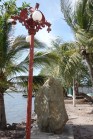 DSC08325 Published April 6, 2016 at 3648 × 5472 in Just the Pics, Ma’am ← Previous Next → We took a walk where the seaside boardwalk, or malecon, used to be, before a hurricane many years ago washed it away. We still found fancy lamps and benches and statues among the rocks and sand.