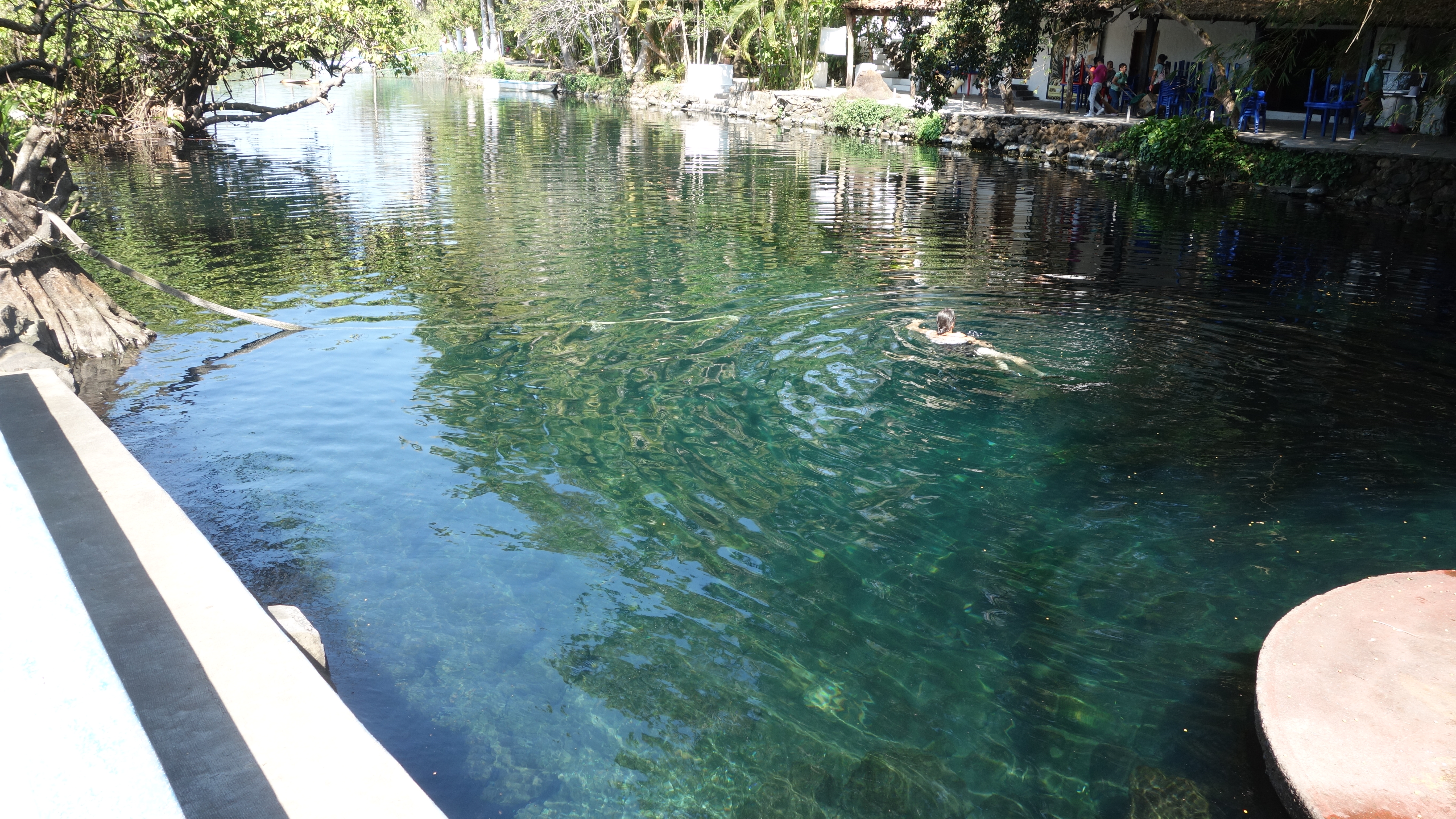 A bit further and the guide parked the boat at Tovara Springs and gave us 20 minutes to take a dip. A fence stretches across and under the water to keep out the crocs, but only Carla fui a nadar in the crystal clear spring water…after she checked for crocodrilos, of course.