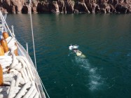 Brrr! But warm enough for Carla to enjoy a nice swim. Even more so if one brings along a shorty wetsuit (smart gal, that Linda!).